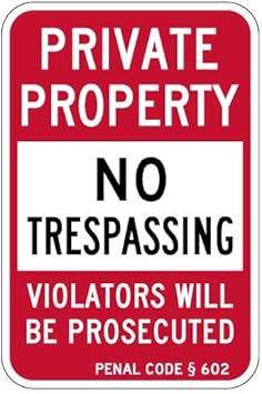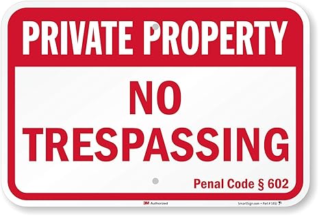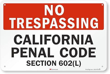 Property rights are almost sacred in. A seventy-five dollar 75 fine for a first offense and. SmartSign-S-7291-EG No Trespassing - California Penal Code Section 602 L Sign 12 x 18 3M Engineer Grade Reflective Aluminum - BlackRed on White.