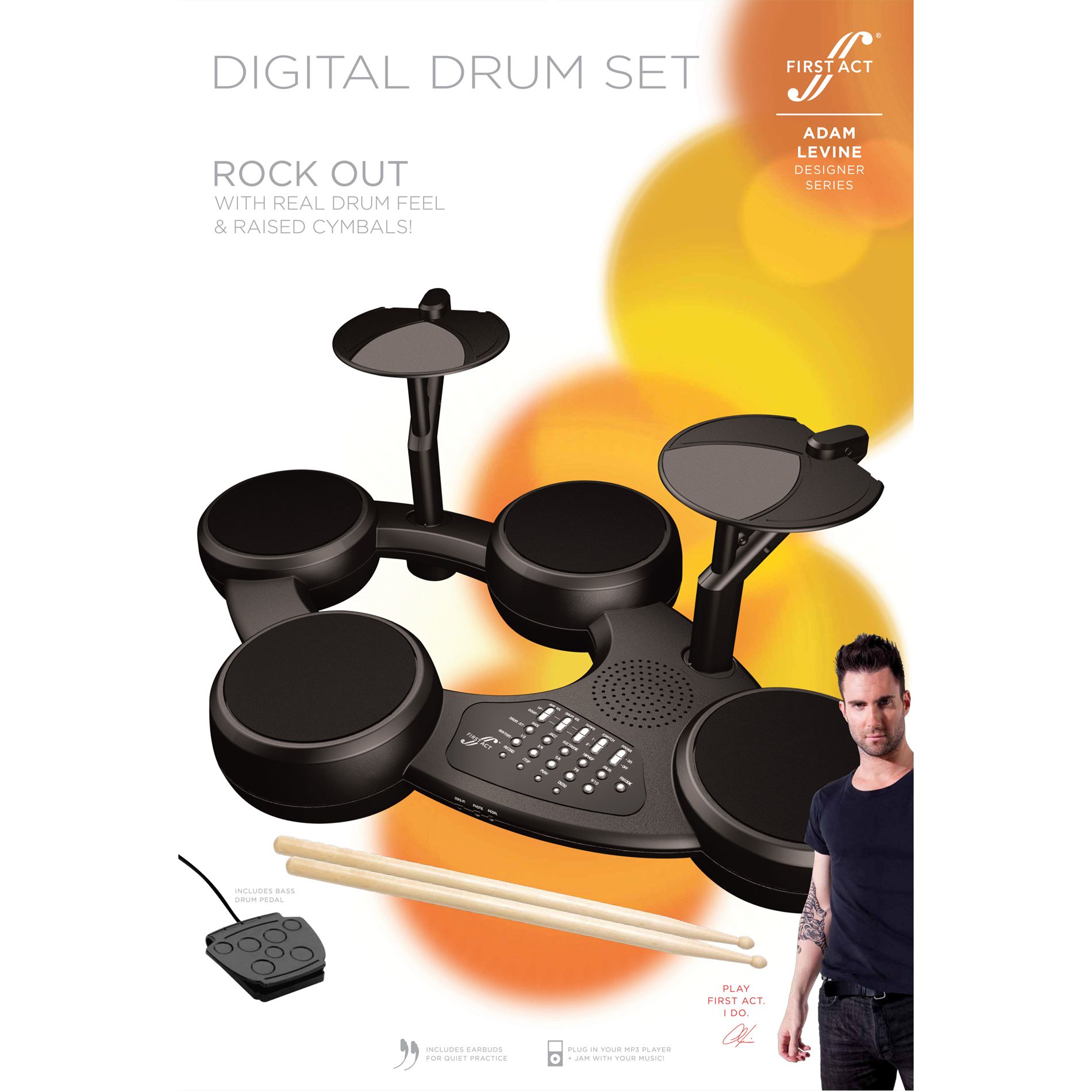 Adam Levine 1-Piece Drum Set by First Act - AL125 32 out of 5 stars 8 Ashthorpe 3-Piece Complete Kids Junior Drum Set - Childrens Beginner Kit with 14 Bass Adjustable Throne Cymbal Pedal Drumsticks - Green. Testing of the First ACT 5 Pad Electronic Drum Machine. Alesis Nitro Mesh Electronic Drum Set Starter Kit.